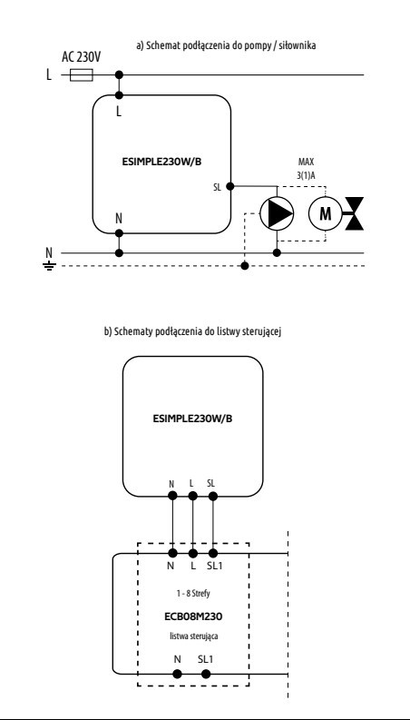 ESIMPLE230W jest przeznaczony do kontroli ogrzewania/chłodzenia płaszczyznowego, charakteryzującego się dużą bezwładnością cieplną. Nastawy temperatury zadanej w pomieszczeniu dokonuje się za pomocą pokrętła. Dzięki wbudowanym algorytmom oferuje znacznie lepszą dokładność regulacji temperatury niż tradycyjne termostaty mechaniczne.