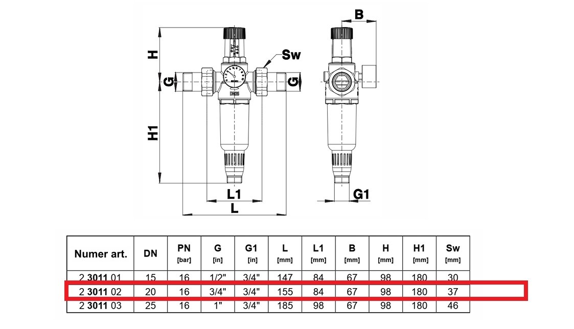 Klucz montażowy jest dołączony do każdego filtra z reduktorem