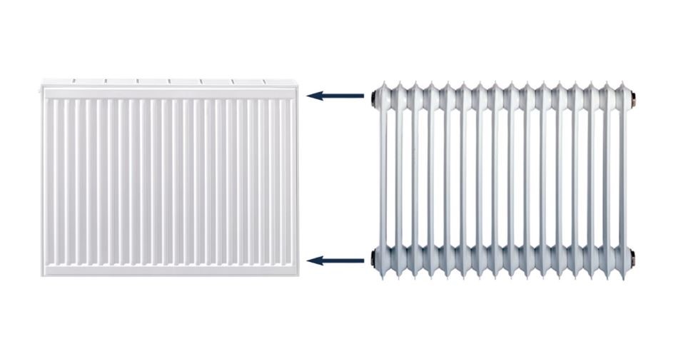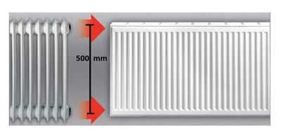 Grzejnik modernizacyjny o rozstawie przyłączeniowym 50 cm. , pasującym do rozstawu grzejników żeliwnych i żeberkowych .