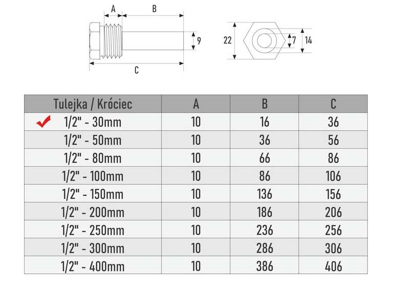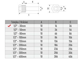 - Gwint zewnętrzny: 1/2"