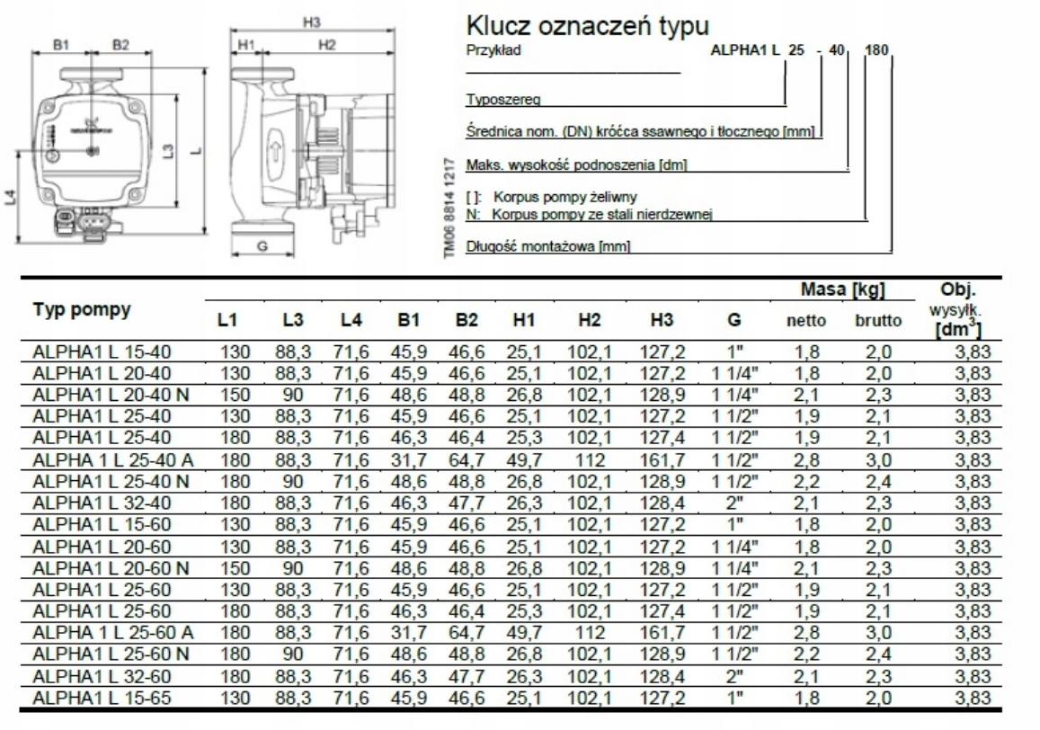 TYP POMPY: ALPHA1 L 25-40