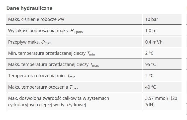 Ta pompa obiegowa jest przeznaczona tylko do ciepłej wody użytkowej.