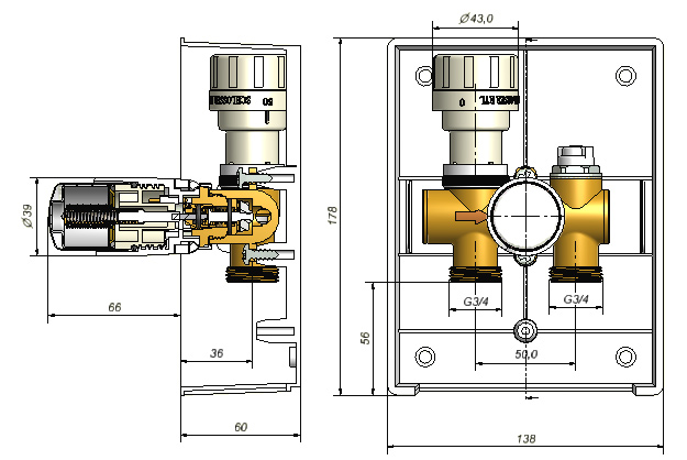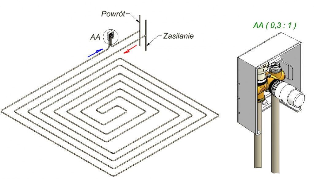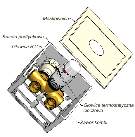 Umożliwia jednoczesną regulację temperatury pomieszczenia i czynnika grzewczego w instalacji ogrzewania podłogowego. Składa się z kasety podtynkowej, w której osadzony jest zawór termostatyczny oraz zawór ogranicznika temperatury czynnika grzewczego RTL.