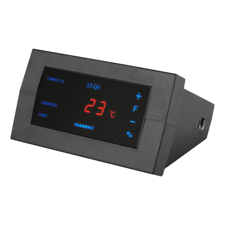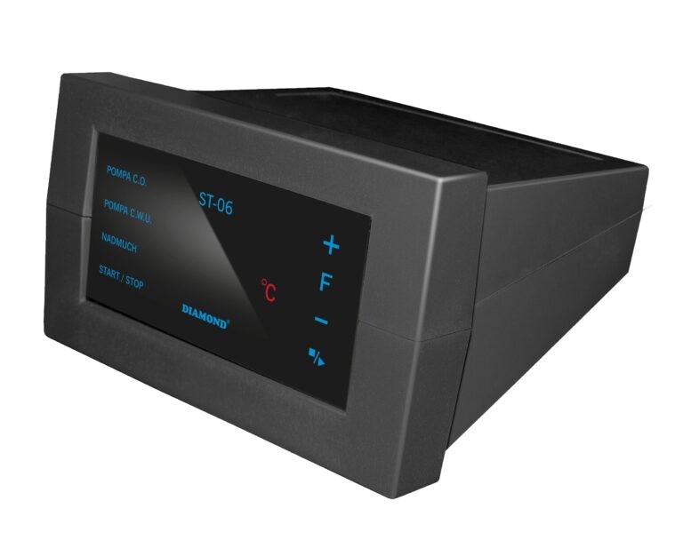 . Posiada panel dotykowy z możliwością podpięcia termostatu