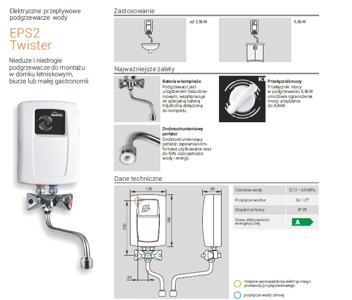 TWISTER przep. ogrzewacz wody+bat. 4,4/5,5kW