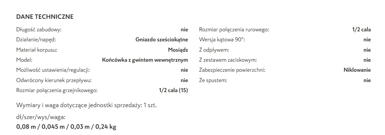 Przyłącze grzejnikowe z uszczelnieniem stożkowym.