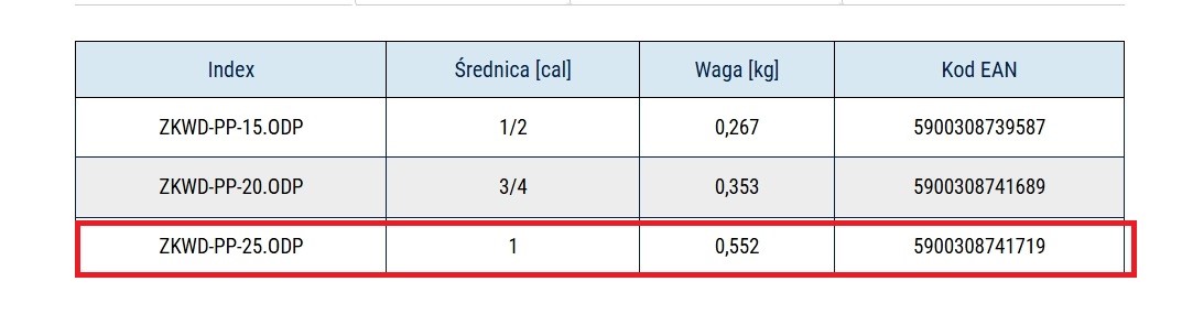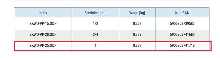 nr katalogowy ZKWD-PP-25.ODP